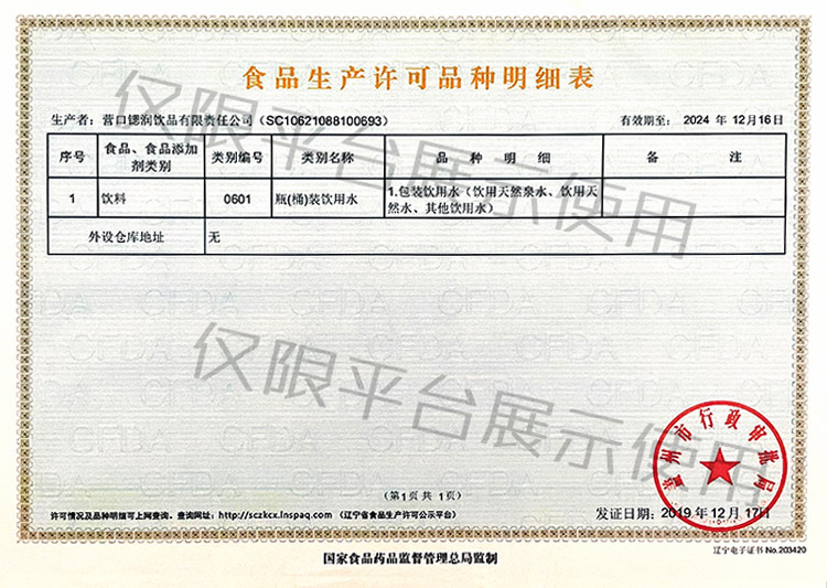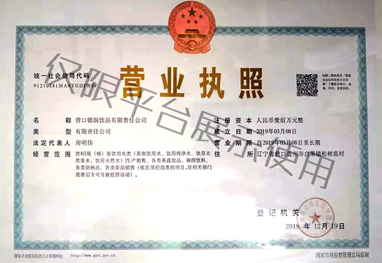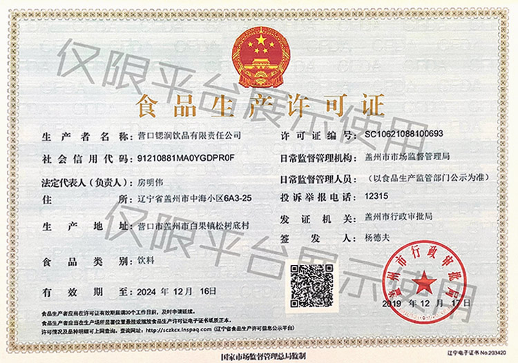 營(yíng)口鍶潤(rùn)飲品有限責(zé)任公司位于中國遼寧省營(yíng)口市蓋州市東城街道辦事處白果農(nóng)場(chǎng)松樹底村,本公司成立于2019年3月8日,主營(yíng)業(yè)務(wù)包括飲料【瓶(桶)】裝飲用水類(其他飲用水 、飲用純凈水 、飲用天然泉水 、飲用天然水 、其他飲用水)生產(chǎn)銷售 、各類果蔬飲品 、碳酸飲料 、各類奶制品 ···